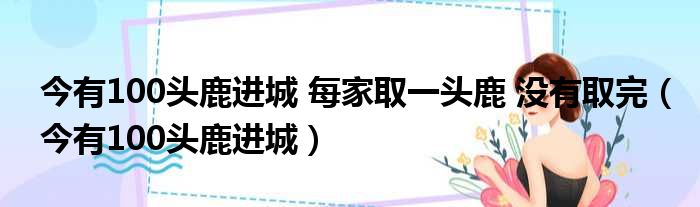 导读 大家好,今天小六子来为大家解答以下的问题,关于今有100头鹿进城 每家取一头鹿 没有取完,今有100头鹿进城这个很多人还不知道,现在让我