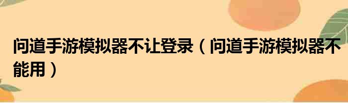 导读 大家好,今天小六子来为大家解答以下的问题,关于问道手游模拟器不让登录,问道手游模拟器不能用这个很多人还不知道,现在让我们一起来看看