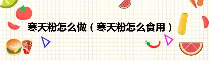 寒天粉怎么做(寒天粉怎么食用)