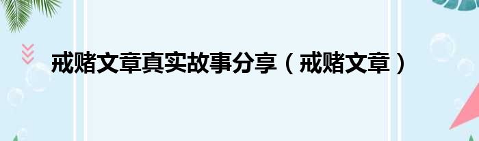 大家好,今天小六子来为大家解答以下的问题,关于戒赌文章真实故事分享,戒赌文章这个很多人还不知道,现在让我们一起来看看吧!
