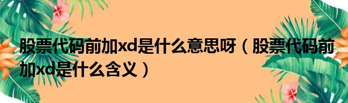 导读 大家好,今天小六子来为大家解答以下的问题,关于股票代码前加xd是什么意思呀,股票代码前加xd是什么含义这个很多人还不知道,现在让我们一