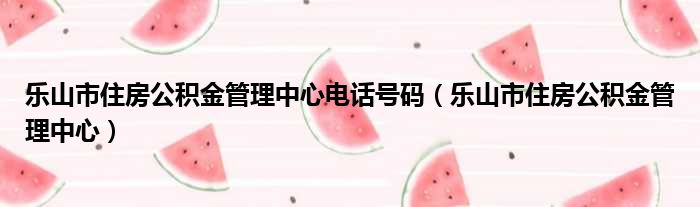 乐山市住房公积金管理中心电话号码(乐山市住房公积金管理中心)