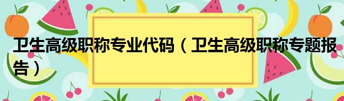 卫生高级职称专业代码(卫生高级职称专题报告)