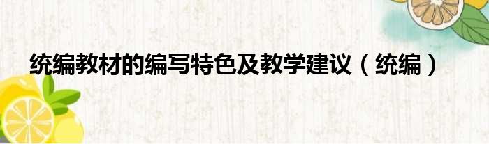 统编教材的编写特色及教学建议(统编)