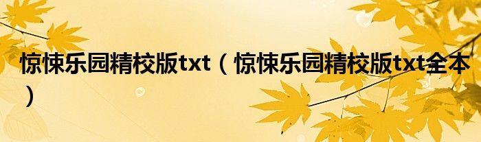 导读 大家好,今天小六子来为大家解答以下的问题,关于惊悚乐园精校版txt,惊悚乐园精校版txt全本这个很多人还不知道,现在让我们一起来看看吧!1
