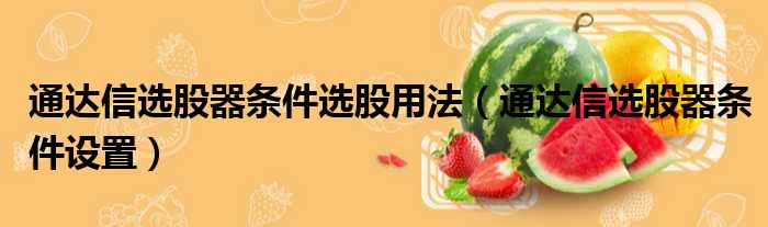 通达信选股器条件选股用法(通达信选股器条件设置)