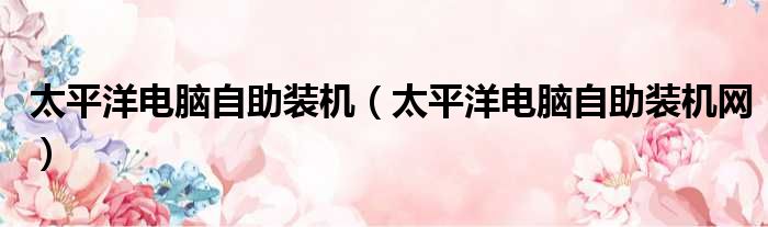 太平洋电脑自助装机(太平洋电脑自助装机网)