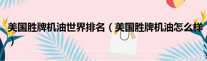 美国胜牌机油世界排名(美国胜牌机油怎么样)