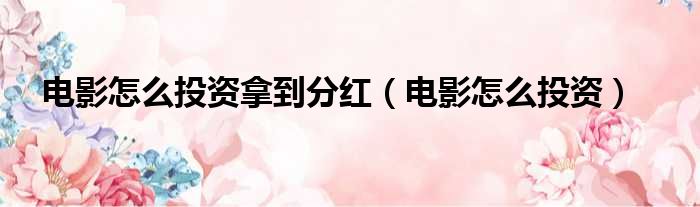 大家好,今天小六子来为大家解答以下的问题,关于电影怎么投资拿到分红,电影怎么投资这个很多人还不知道,现在让我们一起来看看吧!