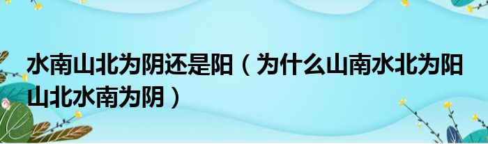 导读 大家好,今天小六子来为大家解答以下的问题,关于水南山北为阴还是阳,为什么山南水北为阳 山北水南为阴这个很多人还不知道,现在让我们一