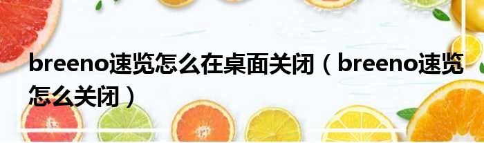 breeno速览怎么在桌面关闭(breeno速览怎么关闭)