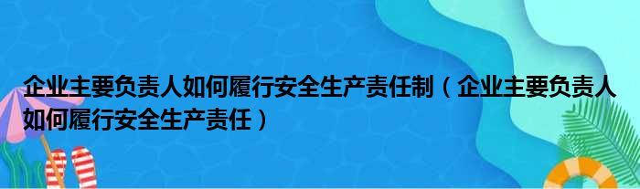 企业主要负责人如何履行安全生产责任制(企业主要负责人如何履行安全生产责任)