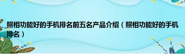 照相功能好的手机排名前五名产品介绍(照相功能好的手机排名)