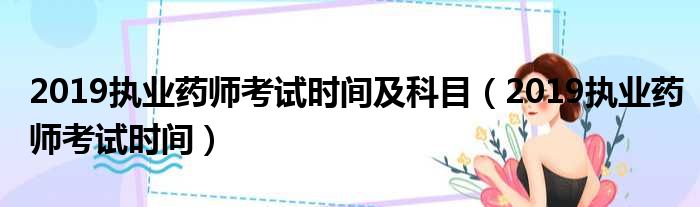 2019执业药师考试时间及科目(2019执业药师考试时间)