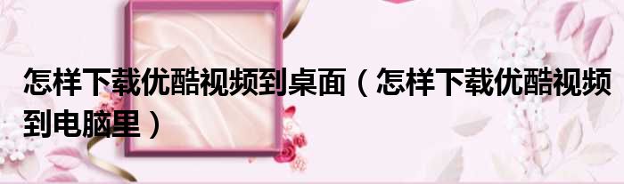 怎样下载优酷视频到桌面(怎样下载优酷视频到电脑里)