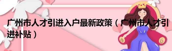 广州市人才引进入户最新政策(广州市人才引进补贴)