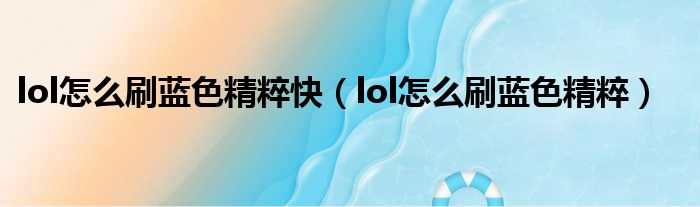 lol怎么刷蓝色精粹快(lol怎么刷蓝色精粹)