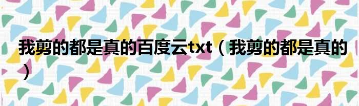 导读 大家好,今天小六子来为大家解答以下的问题,关于我剪的都是真的百度云txt,我剪的都是真的这个很多人还不知道,现在让我们一起来看看吧!1