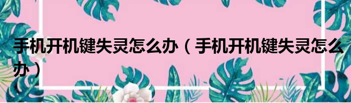 手机开机键失灵怎么办(手机开机键失灵怎么办)