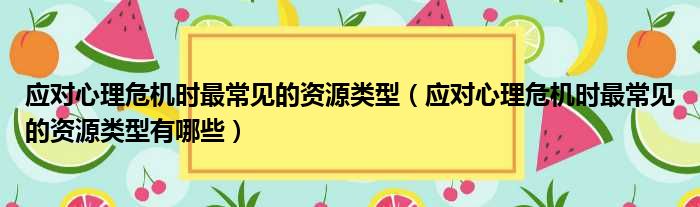 应对心理危机时最常见的资源类型(应对心理危机时最常见的资源类型有哪些)