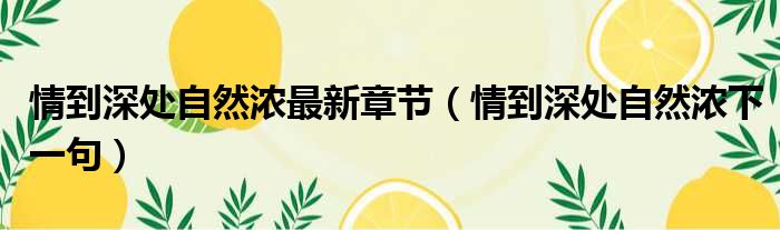 情到深处自然浓最新章节(情到深处自然浓下一句)