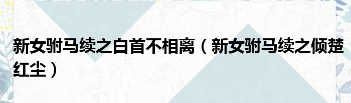 导读 大家好,今天小六子来为大家解答以下的问题,关于新女驸马续之白首不相离,新女驸马续之倾楚红尘这个很多人还不知道,现在让我们一起来看看