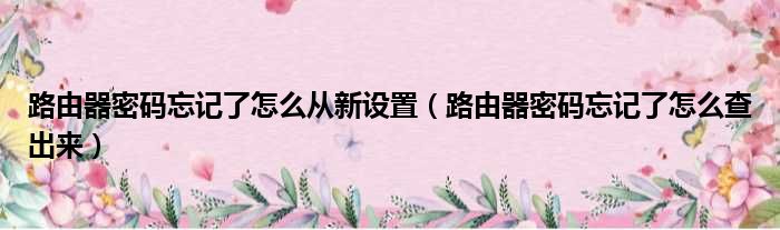 路由器密码忘记了怎么从新设置(路由器密码忘记了怎么查出来)