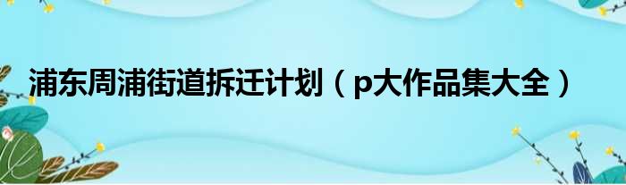 大家好,今天小六子来为大家解答以下的问题,关于浦东周浦街道拆迁计划,p大作品集大全这个很多人还不知道,现在让我们一起来看看吧!