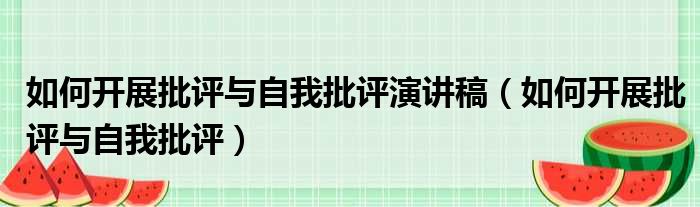 如何开展批评与自我批评演讲稿(如何开展批评与自我批评)