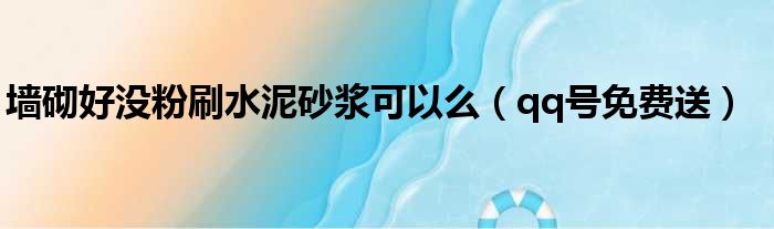 导读 大家好,今天小六子来为大家解答以下的问题,关于墙砌好没粉刷水泥砂浆可以么,qq号免费送这个很多人还不知道,现在让我们一起来看看吧!1、