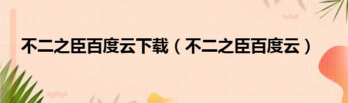 大家好,今天小六子来为大家解答以下的问题,关于不二之臣百度云下载,不二之臣百度云这个很多人还不知道,现在让我们一起来看看吧!