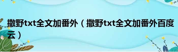 导读 大家好,今天小六子来为大家解答以下的问题,关于撒野txt全文加番外,撒野txt全文加番外百度云这个很多人还不知道,现在让我们一起来看看吧