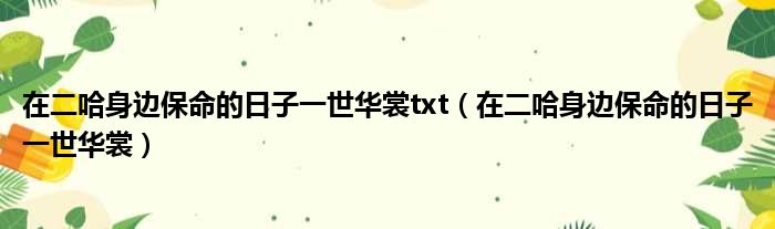 导读 大家好,今天小六子来为大家解答以下的问题,关于在二哈身边保命的日子一世华裳txt,在二哈身边保命的日子一世华裳这个很多人还不知道,现在