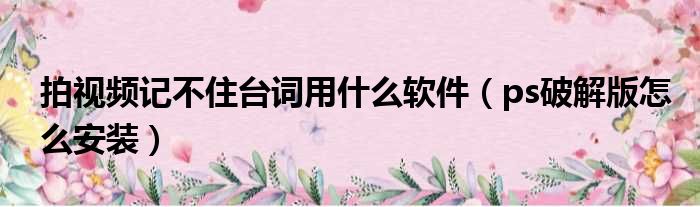 拍视频记不住台词用什么软件(ps破解版怎么安装)