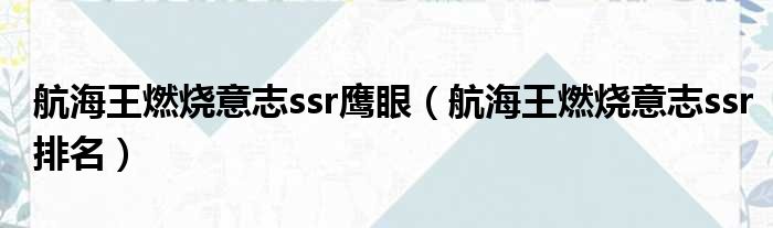 导读 大家好,今天小六子来为大家解答以下的问题,关于航海王燃烧意志ssr鹰眼,航海王燃烧意志ssr排名这个很多人还不知道,现在让我们一起来看看