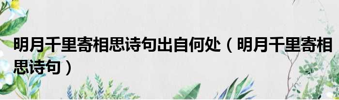 明月千里寄相思诗句出自何处(明月千里寄相思诗句)