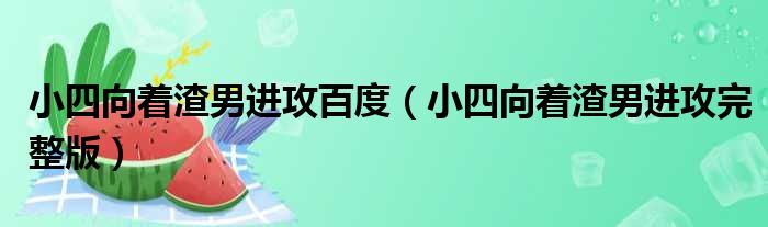 导读 大家好,今天小六子来为大家解答以下的问题,关于小四向着渣男进攻百度,小四向着渣男进攻完整版这个很多人还不知道,现在让我们一起来看看