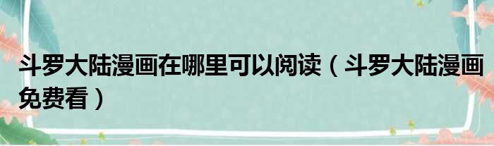斗罗大陆漫画在哪里可以阅读(斗罗大陆漫画免费看)