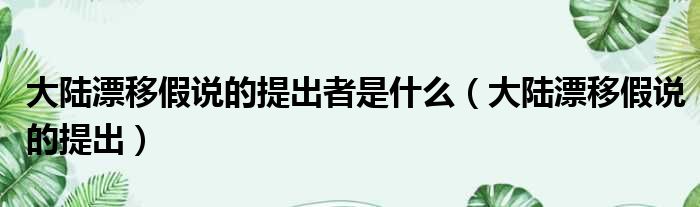大陆漂移假说的提出者是什么(大陆漂移假说的提出)