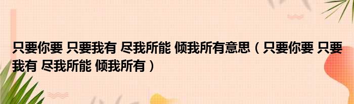 只要你要 只要我有 尽我所能 倾我所有意思(只要你要 只要我有 尽我所能 倾我所有)