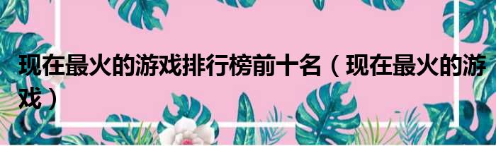 现在最火的游戏排行榜前十名(现在最火的游戏)