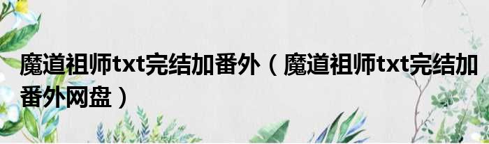 导读 大家好,今天小六子来为大家解答以下的问题,关于魔道祖师txt完结加番外,魔道祖师txt完结加番外网盘这个很多人还不知道,现在让我们一起来