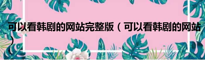 可以看韩剧的网站完整版(可以看韩剧的网站)