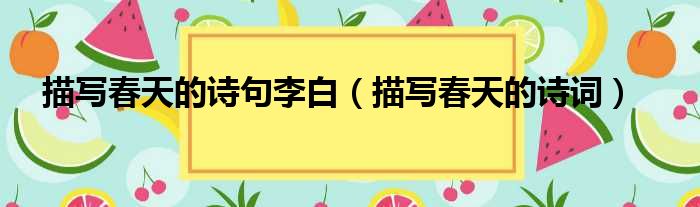 大家好,今天小六子来为大家解答以下的问题,关于描写春天的诗句李白,描写春天的诗词这个很多人还不知道,现在让我们一起来看看吧!