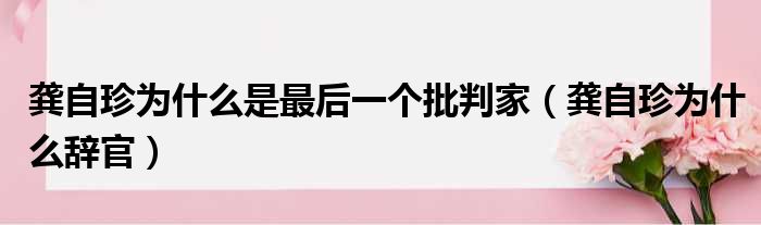 龚自珍为什么是最后一个批判家(龚自珍为什么辞官)