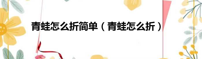 大家好,今天小六子来为大家解答以下的问题,关于青蛙怎么折简单,青蛙怎么折这个很多人还不知道,现在让我们一起来看看吧!