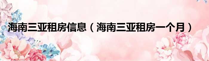 导读 大家好,今天小六子来为大家解答以下的问题,关于海南三亚租房信息,海南三亚租房一个月这个很多人还不知道,现在让我们一起来看看吧!1、海