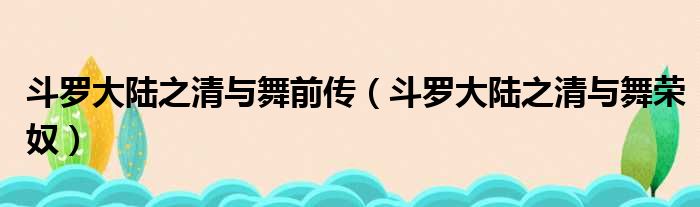 大家好,今天小六子来为大家解答以下的问题,关于斗罗大陆之清与舞前传,斗罗大陆之清与舞荣奴这个很多人还不知道,现在让我们一起来看看吧!