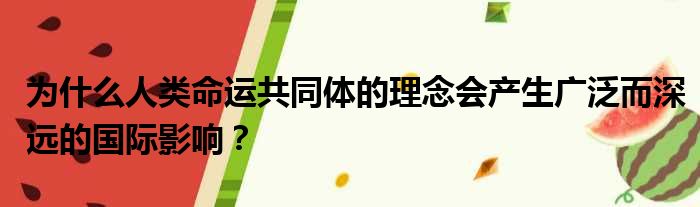 为什么人类命运共同体的理念会产生广泛而深远的国际影响?