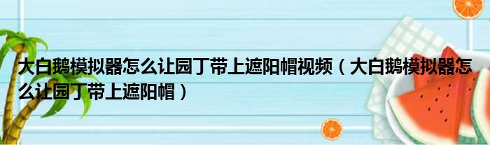 大白鹅模拟器怎么让园丁带上遮阳帽视频(大白鹅模拟器怎么让园丁带上遮阳帽)